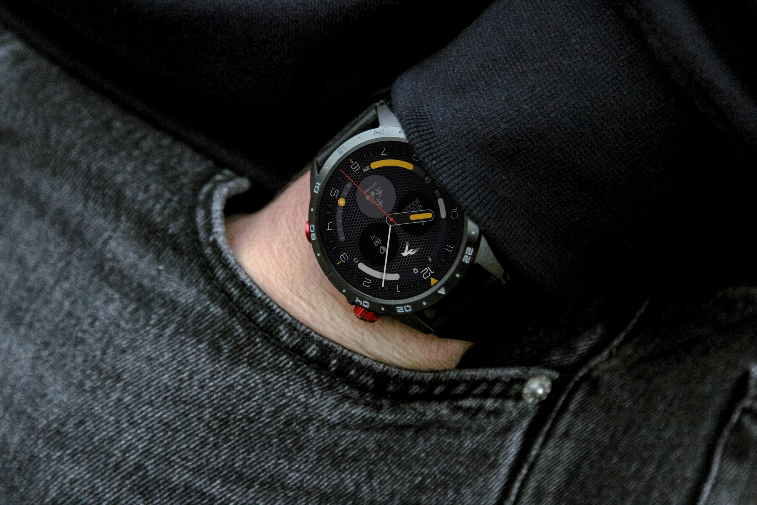 Un grand écran tactile AMOLED (diodes électroluminescentes organiques à matrice active) couleur de 1,3″ avec une résolution de 360 x 360 pixels