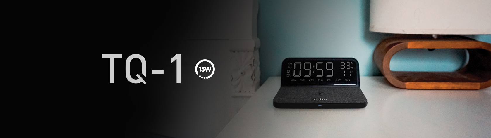 Le réveil numérique Veho TQ-1 avec chargeur sans fil Qi intégré est élégant et moderne. Il s’intègre parfaitement dans n’importe quelle chambre ou en voyage. Le TQ-1 prend en charge la charge sans fil à 5 ​​W/7,5 W/10 W/15 W et est compatible avec tous les appareils équipés de la technologie Qi. Largement compatible avec :